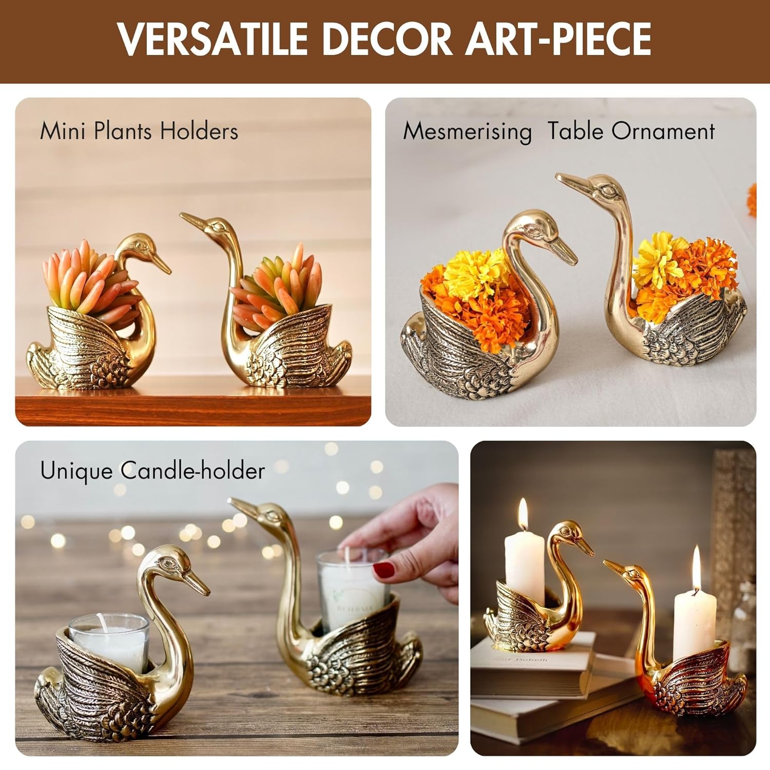 Aluminium Pair of Swans for Good Luck and Love | Candle Holder for Home Decor Tabletop Living Room